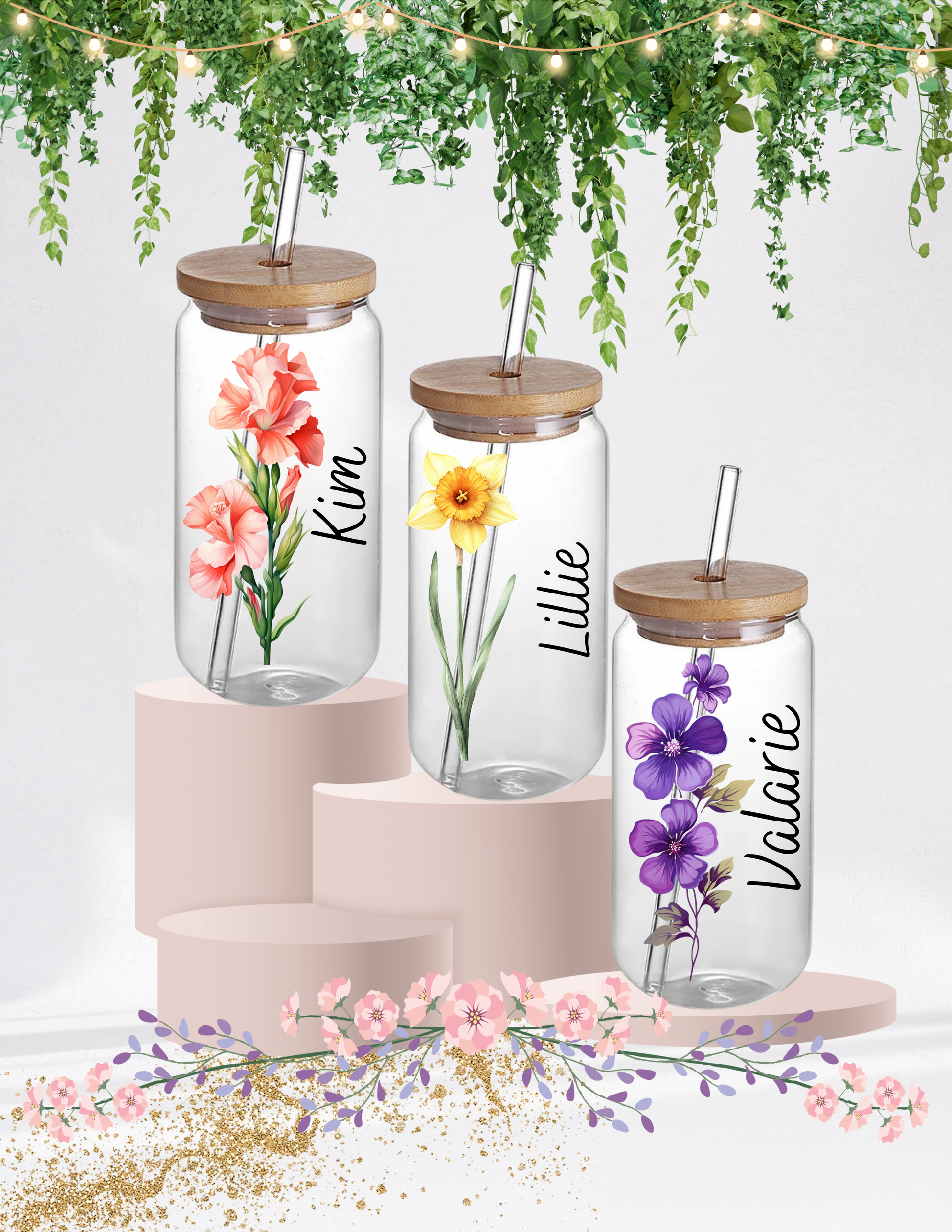 Each glass is beautifully designed with your birth month flower and personalized name, making it a thoughtful and elegant gift for any occasion.